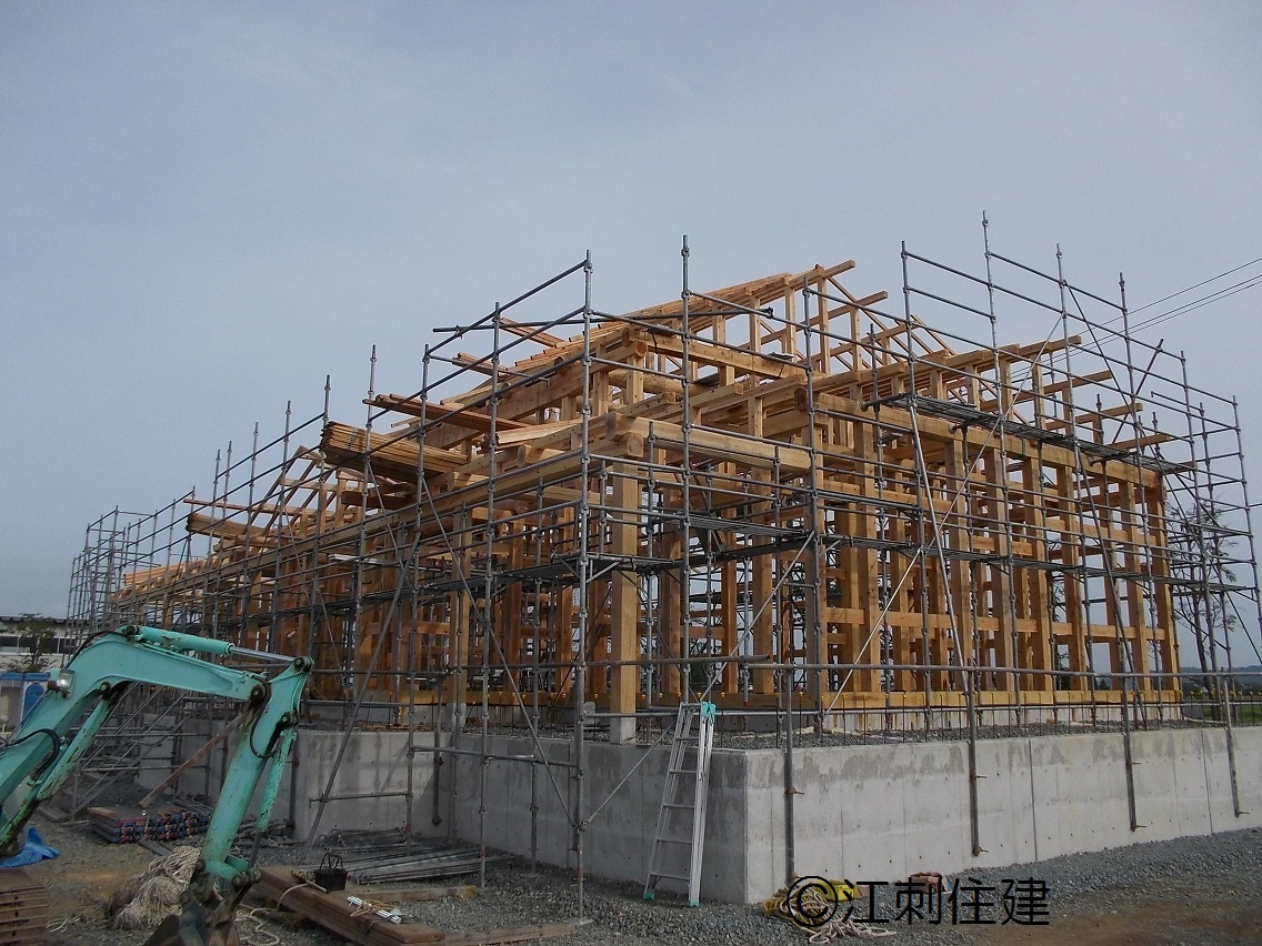 骨組みの建て方中。