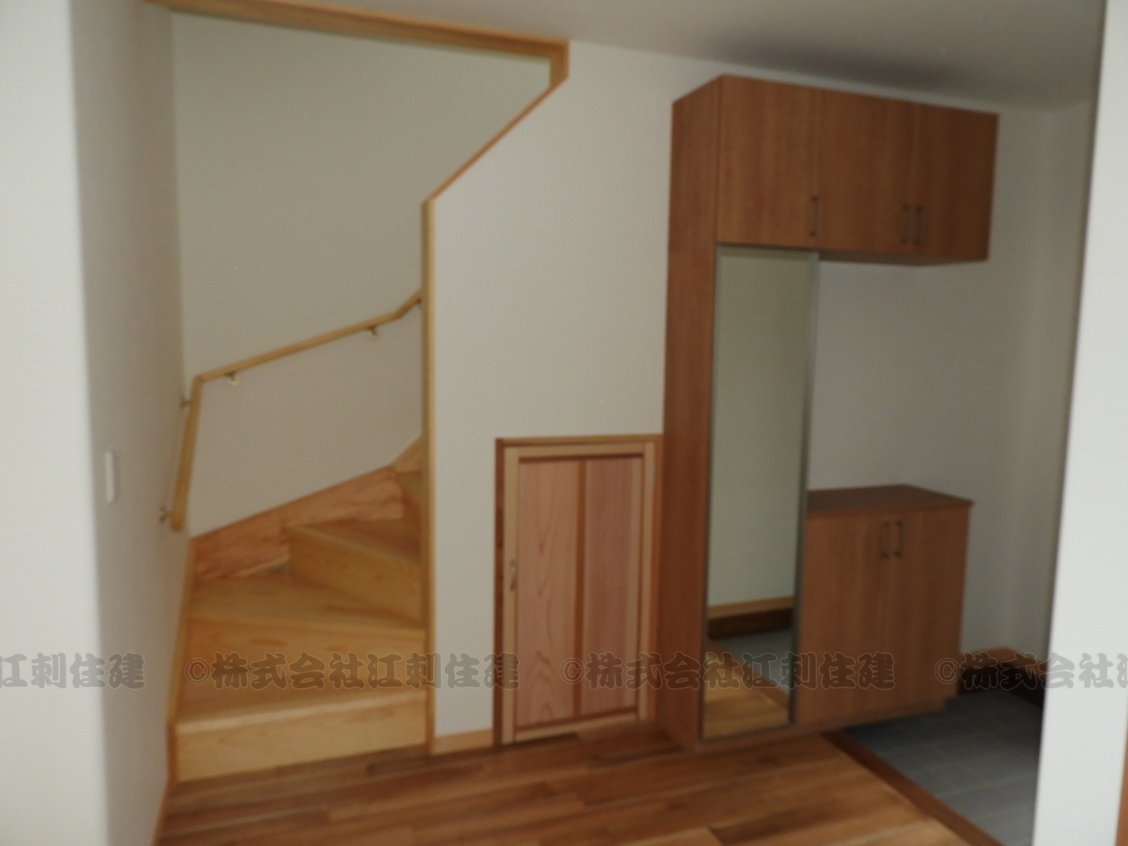 木製建具、階段室の一部に無垢材仕上をさせていただきました。