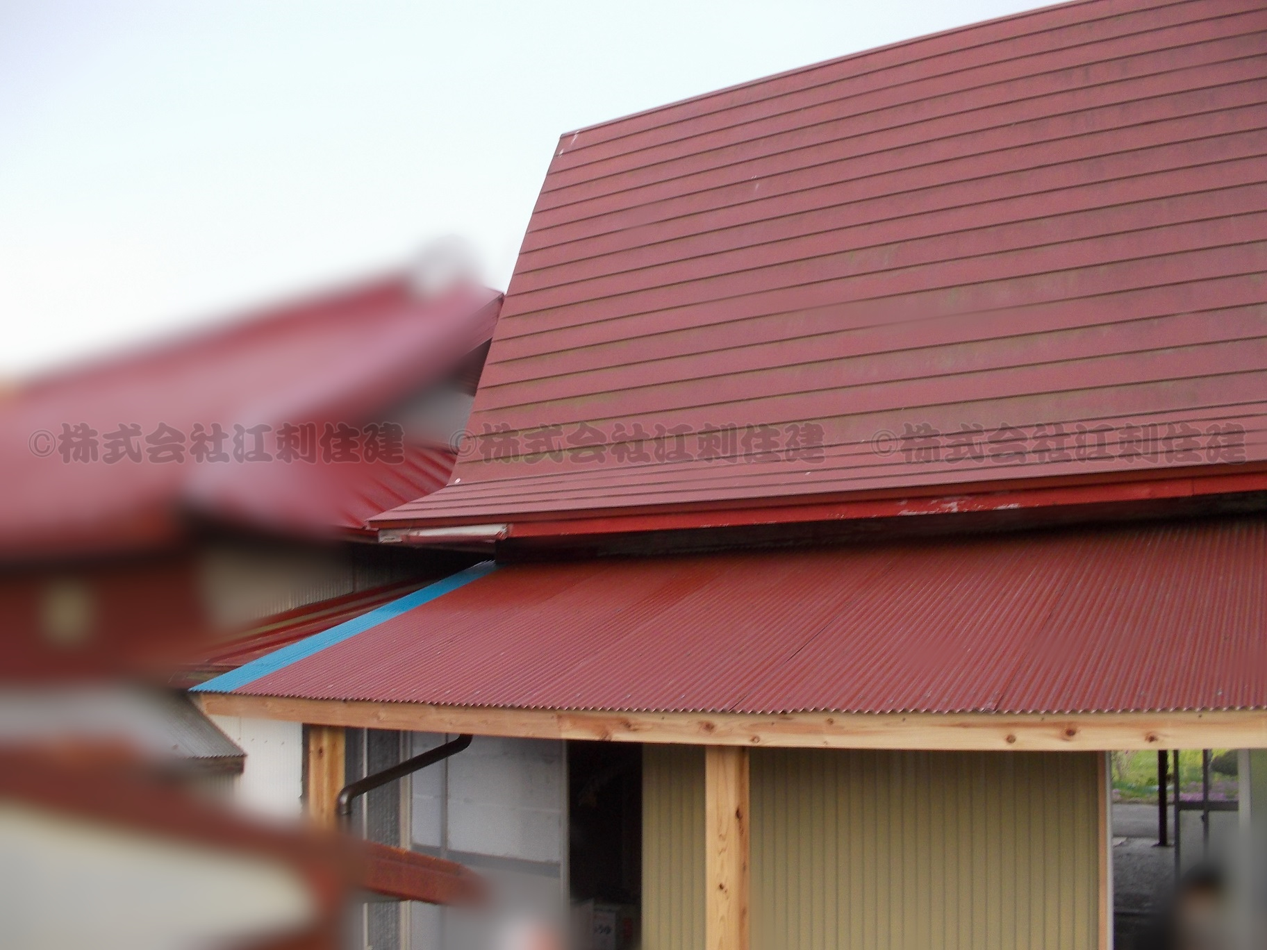 昨年末から今年初めにかけて、大雪による屋根の被害が多発し、お施主様所有倉庫の下屋も押しつぶされてしまったため、復旧工事のご依頼をいただきました。